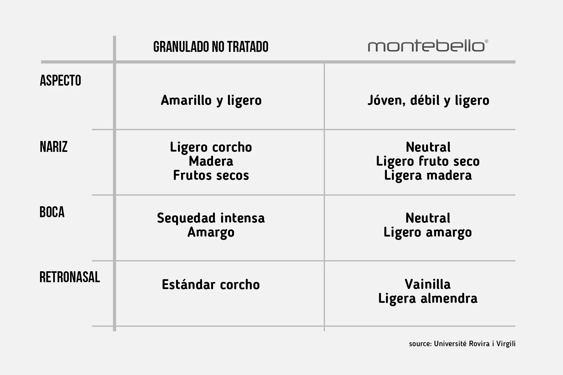La neutralidad organoléptica es un resultado de la aplicación de la tecnología TD3 y Montebello, desarrolladas por Trefinos, y permiten reducir el TCA presente en el corcho hasta niveles indetectables, sin alterar la estructura de la suberina